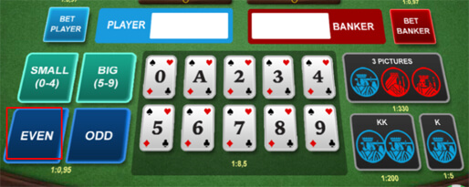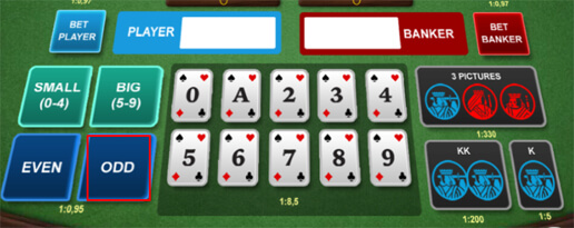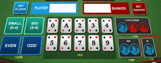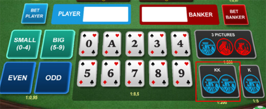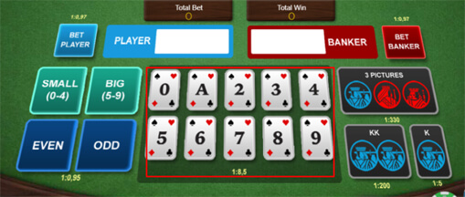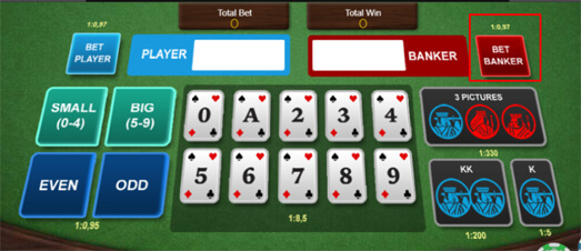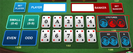 Note : Jika hasil keluaran antara player dan banker sama nilainya maka akan di tentukan dari jumlah picture atau gambar (J,Q,K) yang lebih banyak di antara keduanya. Jika jumlah picture atau gambar sama maka bettingan Player dan Banker hasilnya DRAW.