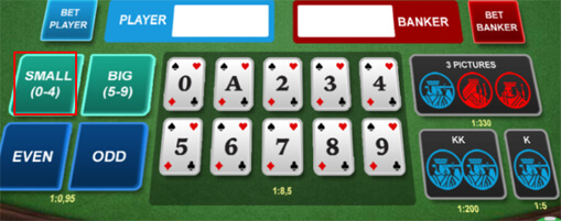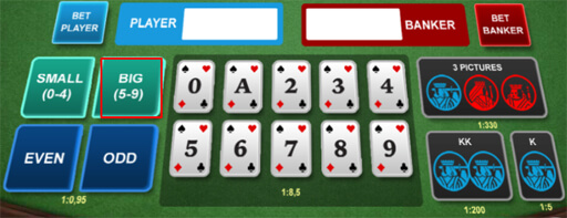Bettingan yang menang adalah Angka Utama (9), Big, Odd, KK Dan untuk Bet Player juga di nyatakan menang karena kartu player 9 sedangkan kartu dealer hanya berjumlah 8.